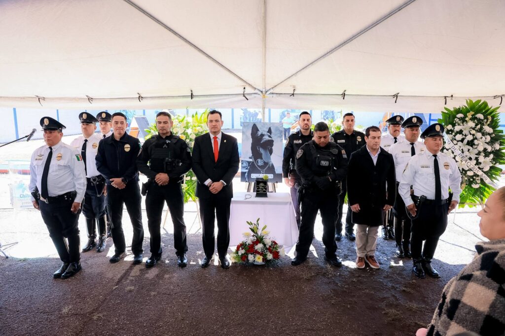 El ejemplar fue despedido con honores en una ceremonia encabezada por el presidente municipal de Chihuahua, Marco Antonio Bonilla Mendoza, quien en su discurso dedicó sus primeras palabras al oficial Carlos Meléndez, binomio del agente K9.