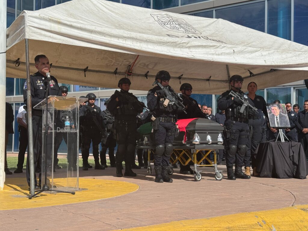 El secretario de Seguridad Pública del Estado (SSPE), Gilberto Loya, acudió al último pase de lista del director de la Policía Municipal de Delicias, Jorge Luis Bustamante, quien recientemente perdió la vida.