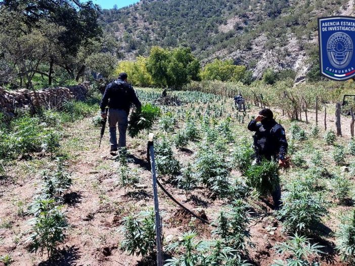 Durante los recorridos de vigilancia que se realizan en la sierra en coordinación con el Ejército Mexicano, elementos de la Agencia Estatal de Investigación destruyeron un plantío de mariguana que localizaron en las inmediaciones del Rancho Baguara, municipio de Nonoava.