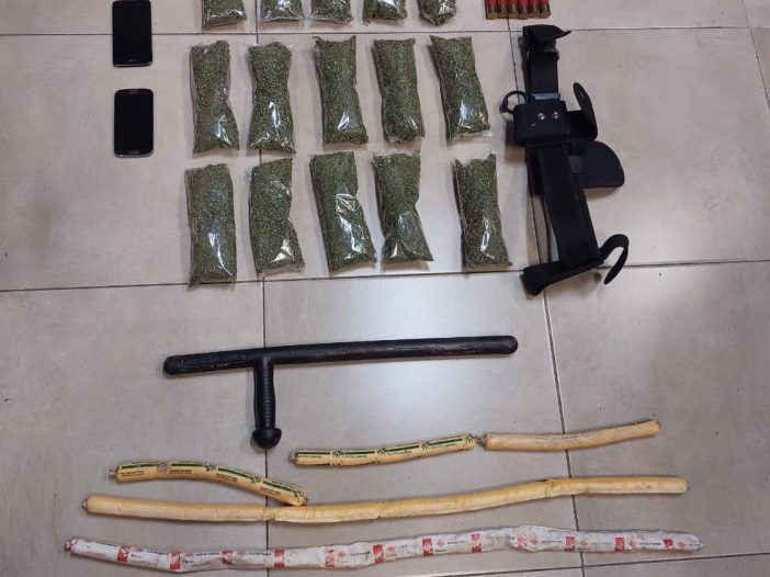 Elementos de la Agencia Estatal de Investigación (AEI) detuvieron a tres hombres por posesión de narcóticos , armas de fuego y explosivos en la ciudad de Parral.