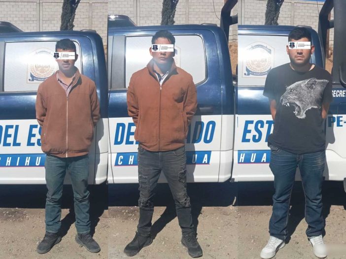 Los presuntos, identificados como Noé L. G., Mario D. A. y Noé N. P., fueron detenidos gracias al apoyo de videovigilancia de las cámaras ubicadas sobre los tramos carreteros de Cuauhtémoc a Parral donde se localizó la unidad, una camioneta Toyota Tacoma de color rojo que había sido sustraída el pasado 16 de marzo.