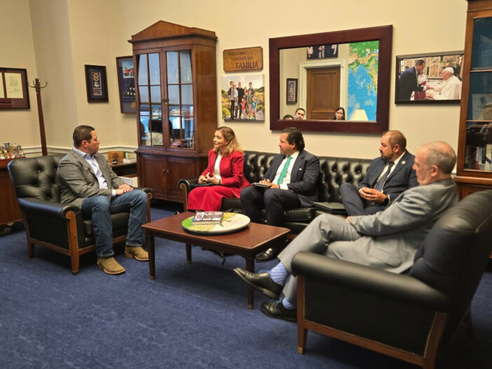 Como parte de la gira de trabajo que lleva a cabo en Washington D. C., la gobernadora Maru Campos sostuvo una reunión con el congresista Tony Gonzales, representante del Distrito 23 de Texas, con quien dialogó sobre asuntos prioritarios en materia ganadera, comercial y de seguridad fronteriza.