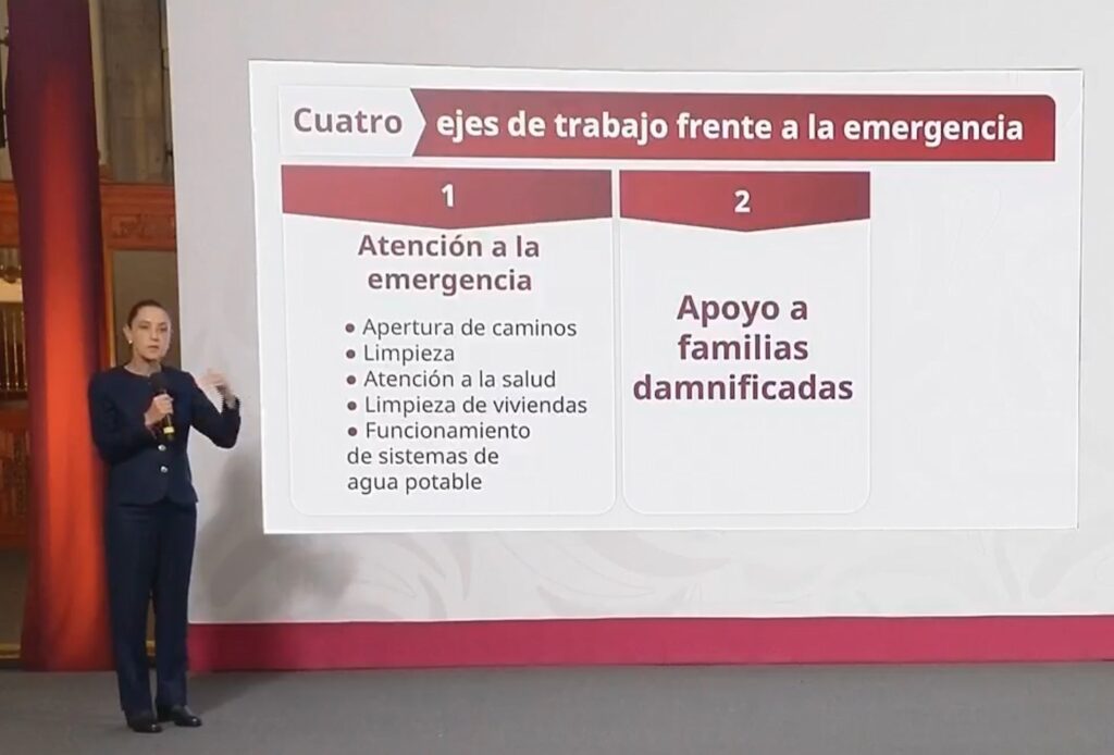 Durante su conferencia matutina, Sheinbaum cuestionó que mientras su gobierno mantiene despliegues de auxilio en estados como Veracruz, Puebla, Hidalgo y Guerrero, la dirigencia panista haya optado por realizar un evento partidista en la capital, centrado en el nuevo logo y lema del partido.