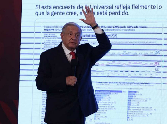 En la conferencia de prensa matutina se proyectó el tuit de José Antonio Crespo, quien escribió que “si esta encuesta de El Universal refleja fielmente lo que la gente cree, el país está perdido”.