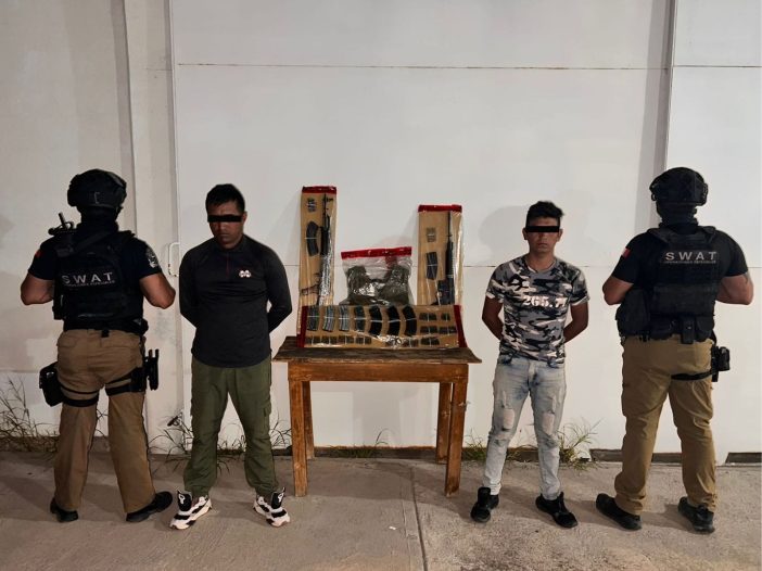 Además, se incautaron dos armas de fuego de grueso calibre, nueve cargadores y 122 cartuchos útiles y un chaleco táctico.