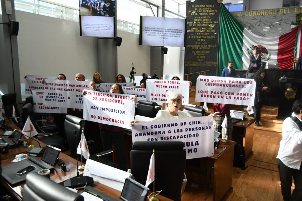 Durante la sesión, asistentes desplegaron pancartas en respaldo a la mandataria. En contraste, diputadas y diputados de Morena expresaron su inconformidad por el caso del crematorio Plenitud, al señalar que el propietario del negocio enfrenta su proceso judicial en libertad.