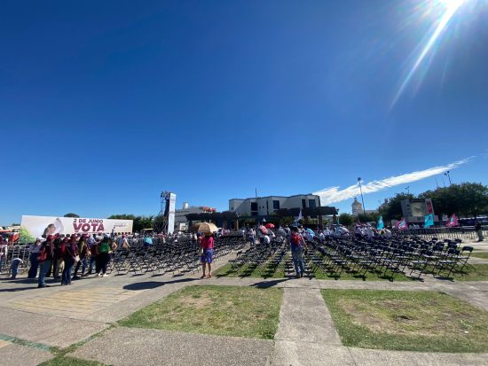Llegan a la Plaza de la Grandeza simpatizantes y militantes de Sheinbaum
