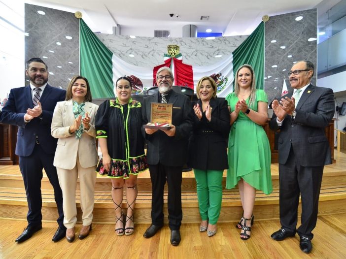 El artista fue inscrito también como persona galardonada en el muro de honor de la Sala de Visitantes Distinguidos del Poder Legislativo y recibió un cheque correspondiente a 59 mil 427 pesos.
