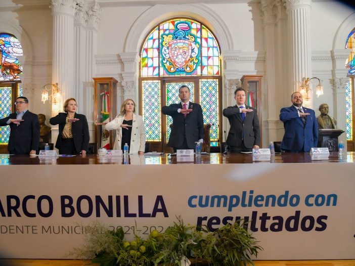 En punto de las 11:00 horas, el presidente municipal de Chihuahua, Marco Bonilla Mendoza, presentó su informe de actividades correspondiente al segundo año de gestión de la administración municipal 2021-2024.