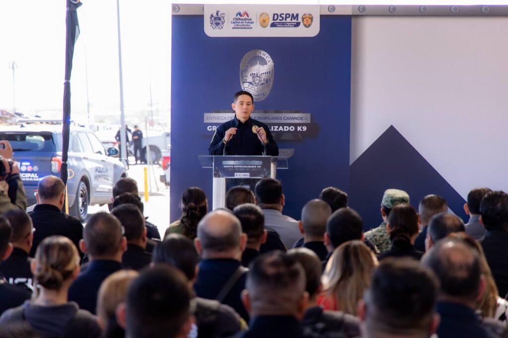 En representación de la gobernadora Maru Campos, el subsecretario de Especialización y Profesionalización Policial, Esteban Piñón, resaltó que la llegada de estos perros es resultado de la coordinación entre los tres órdenes de gobierno.
