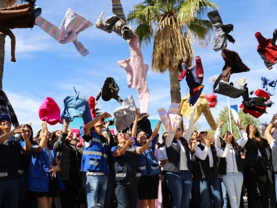 Esta es la segunda edición de la actividad, con la que se recaudaron 26 mil 500 chamarras para infantes y adolescentes desde los 5 a los 15 años, quienes estudian en 247 escuelas, donde también actualmente se distribuyen desayunos fríos para apoyar el aprovechamiento educativo.