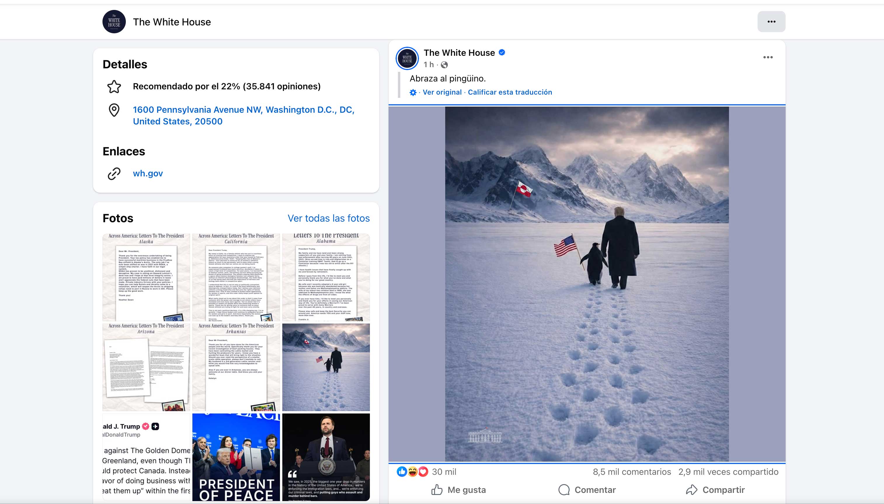 La publicación, que permanece visible en la página de Facebook oficial de la Casa Blanca, acumula miles de comentarios. Mientras que los seguidores del mandatario celebran la imagen como un símbolo de expansión y “paz”, científicos, geógrafos y usuarios de redes sociales han convertido el error en tendencia mundial.