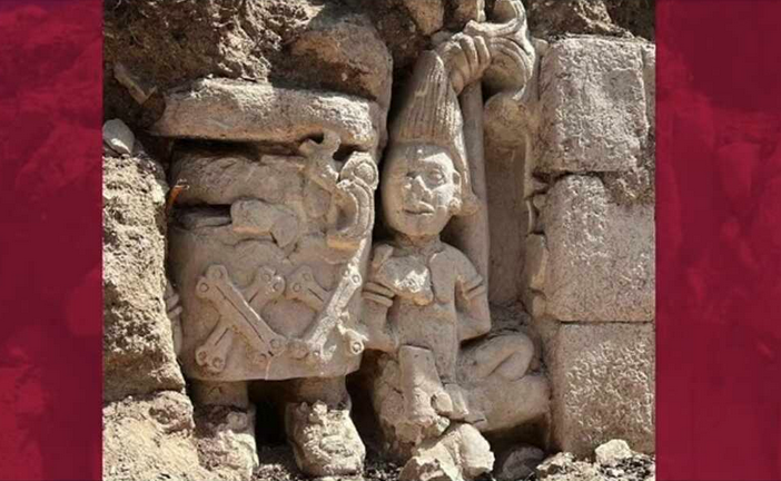 “Como ustedes ven, se trata de un cautivo, por las manos atadas; está tomado por una gobernante mujer que tiene unas faldas con huesos cruzados y le está tomando de los cabellos para expresar que se trata de un cautivo. En la parte superior de la Acrópolis hay una serie de recintos con este tipo de esculturas, adosadas a las fachadas”, dijo.