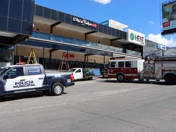 Elementos de la Policía Municipal y Bomberos acudieron a la plaza HÉBÉ tras presentarse una fuga de gas en uno de los locales; fueron evacuados al menos 150 empleados.