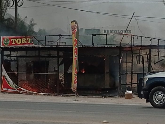 Un puesto de comida ubicado en el kilómetro 5.5 de la carretera Aldama de Chihuahua fue consumido por el fuego luego de una explosión de un tanque de gas.