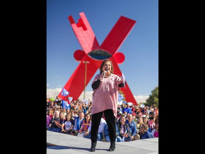 La precandidata presidencial fue recibida en la Plaza de la Mexicanidad por miles de mujeres que la vitorearon y ovacionaron al coro de ¡Presidenta, presidenta, presidenta!