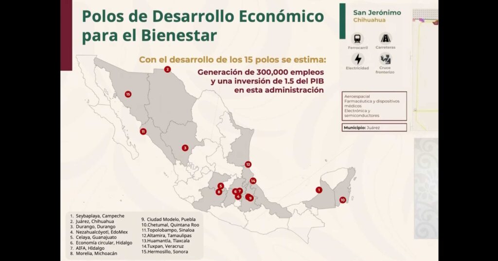 El programa de los Polos de Desarrollo, explicó Ebrard, se ha venido trabajando durante meses con el apoyo de todos los gobiernos estatales participantes y la conducción de la presidenta, quien se ha encargado de revisar cada uno de estos puntos.