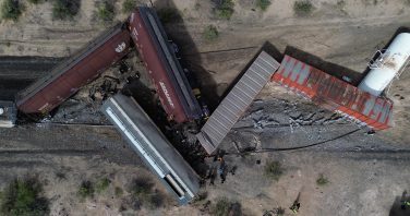 Tras el descarrilamiento del ferrocarril en el kilómetro 302 de la carretera Juárez-Chihuahua, volcaron 13 tanques, cinco de los cuales transportaban ácido sulfúrico, informó Protección Civil municipal, instancia que acudió con su personal a la escena del desastre que también dejó personas migrantes lesionadas. Informaron que detectaron una fuga en uno de estos tanques con … Sigue leyendo Fotogalería: Fueron 13 los carros tanque del tren volcados en el desierto, 5 transportaban químicos