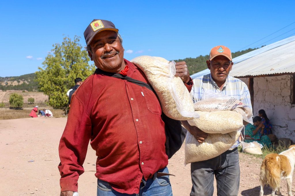 En Huahuachérare se distribuyeron 700 paquetes de maíz y frijol, mientras que en Narárachi se entregaron 400, equivalentes a más de 20 toneladas.