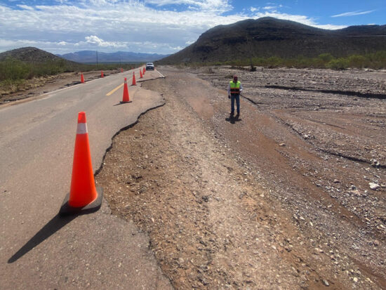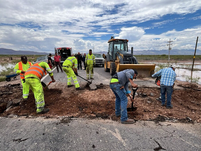 Las lluvias que cayeron sobre la parte este de la entidad, causaron daños a la carretera y la abertura de un socavón de grandes dimensiones en la carretera Chihuahua a Ojinaga, lo que obligó a las autoridades a cerrar temporalmente la circulación en esa vía y trabajar a marchas forzadas para reparar ese daño.
