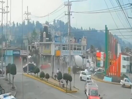 VIDEO: Revolvedora se queda sin frenos, embiste taxi y vuelca en glorieta de Almoloya de Juárez; dos heridos graves
