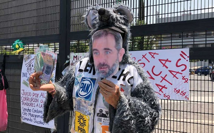 Frente a las instalaciones del Instituto Nacional Electoral (INE), un par de manifestantes colocaron carteles en los que exigen juicio en contra de Lorenzo Córdova, Ciro Murayama y Edmundo Jacobo.