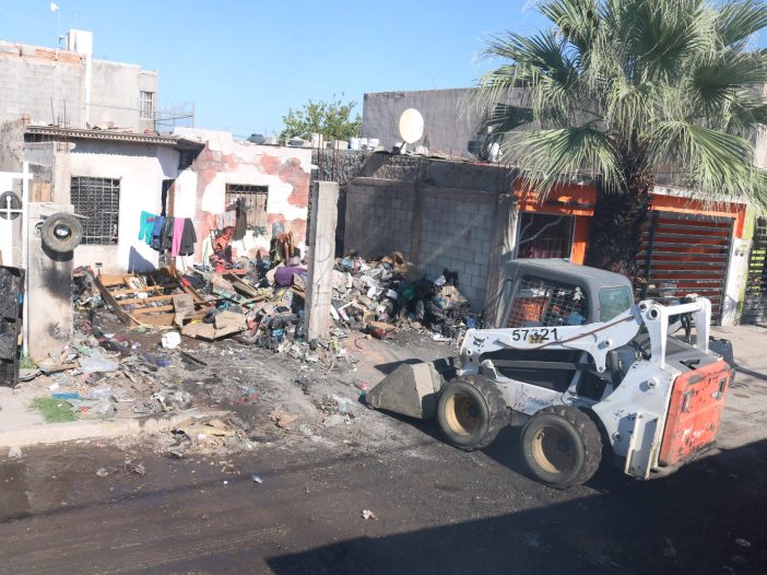 Por tal motivo, el gobierno municipal a través de la Dirección de Servicios Públicos Municipales, llevó a cabo la limpieza de la vivienda ubicada en la colonia Rinconada los Nogales, de donde retiró 21 toneladas de basura acumulada al exterior de la misma.