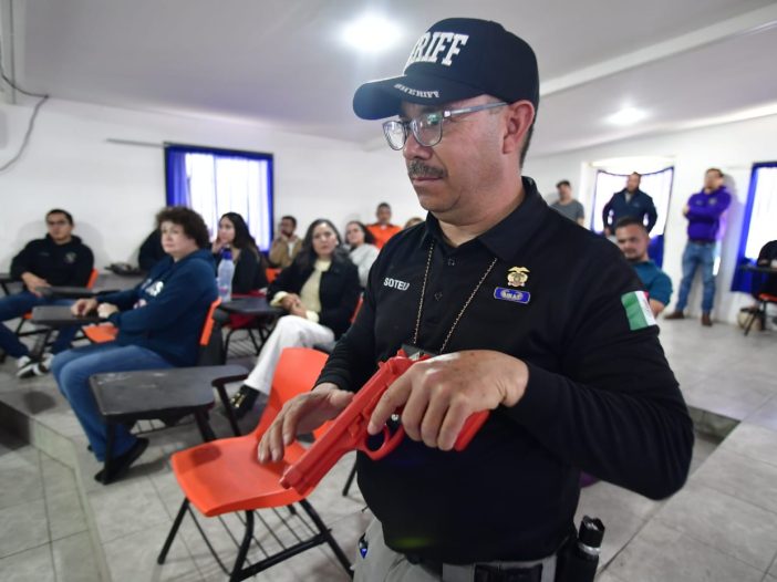 La Secretaría de Seguridad Pública del Estado (SSPE), impartió el taller denominado “Tirador Activo”, en el cual los instructores del Instituto Estatal de Seguridad Pública (IESP) brindaron información al personal de la Preparatoria Maestros Mexicanos, sobre las acciones a tomar en el hipotético caso de afrontar una situación de hostilidad proveniente de tiradores activos.