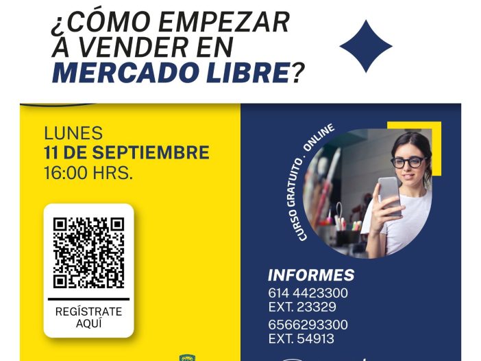 Mercado Libre ofrece el curso online “¿Cómo empezar a vender en Mercado Libre”, con acceso en la liga: https://mercadolibre.zoom.us/webinar/register/WN_MeIKU5dOTtiqoISV4BJ6gg el lunes 11 de septiembre.