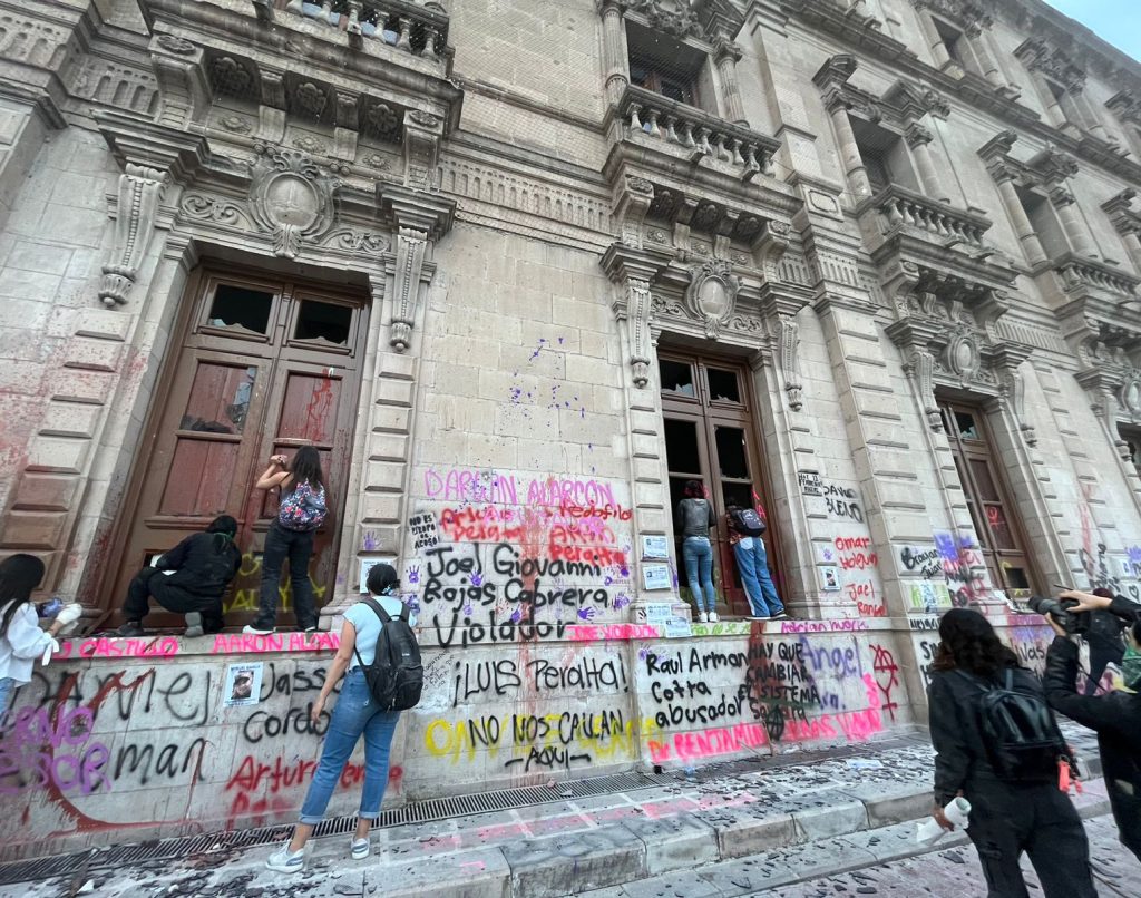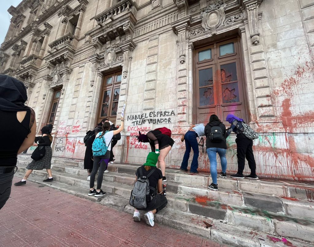 En 2023, durante la protesta realizada también en el centro histórico, se reportaron daños en ventanas y accesos del mismo recinto gubernamental, además de pintas en monumentos y edificios públicos.