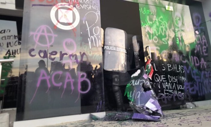 El pasado 8 de marzo la protesta en La Paz concluyó con una concentración en la explanada del Centro de Justicia Penal donde al terminar el pronunciamiento y hacer bailes y performance, mujeres arrojaron piedras, palos, destrozaron letreros para romper los cristales de las puertas de acceso al edificio, hicieron quemas de cartón y telas, y sacaron un escritorio y una computadora.