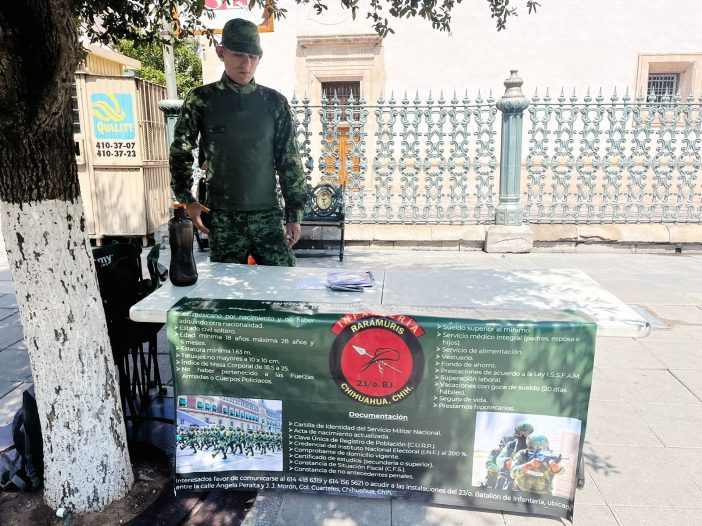 Elementos de la Infantería Rarámuris del 23 Batallón, invitan a las y los jóvenes a ingresar a la Secretaría de la Defensa Nacional.