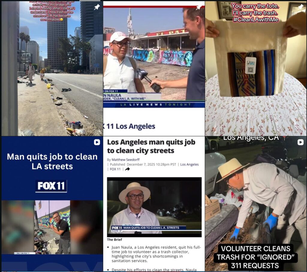 Sin embargo, por alguna razón el proyecto no despegó, pero en su lugar nació algo inesperado: Clean L.A. With Me (Limpia Los Ángeles Conmigo), una organización sin fines de lucro que ya ha removido más de 100 mil libras (45 toneladas) de basura de las calles angelinas.
