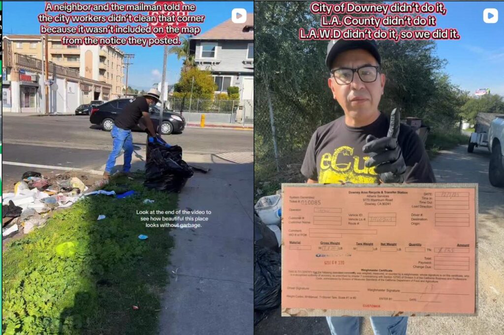 Los Ángeles, CA – Mientras la ciudad de Los Ángeles gasta más de 200 millones de dólares al año en programas de limpieza urbana, un inmigrante ecuatoriano de 31 años está haciendo el trabajo que las autoridades no terminan de hacer: barrer las aceras él solo, todos los días, de sol a sol.