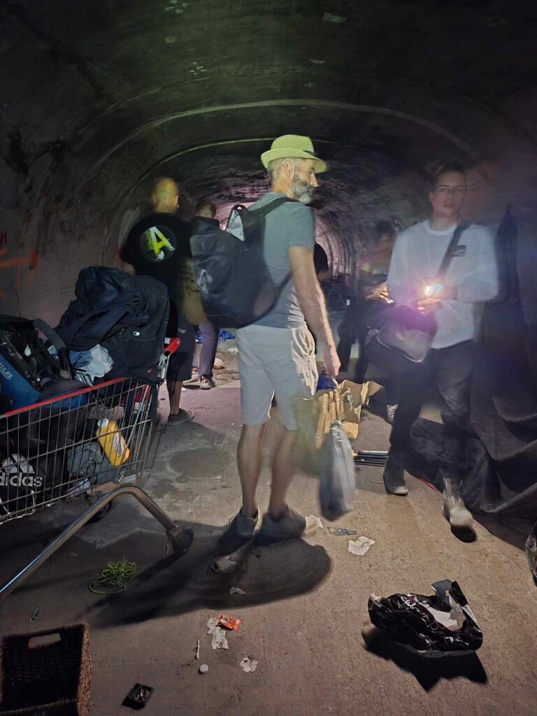 Muchos residentes eligen los túneles para escapar del calor extremo del verano (que supera los 45 °C), la violencia de los campamentos callejeros y el acoso policial.