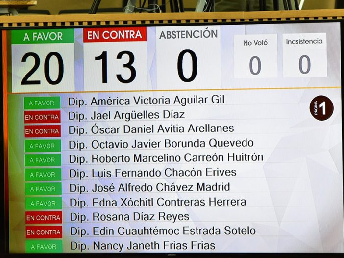 Antes de someter el proyecto a votación, los coordinadores parlamentarios de Morena y el PAN, Cuauhtémoc Estrada y José Alfredo Chávez, del PAN, se cantaron el tiro, “con todo respeto”: “Nos vemos en el 27”, en referencia al año cuando se elegirá gobernador para el próximo sexenio.