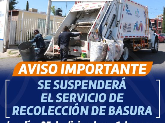 Atención!, se suspenderá recolección de basura 25 de diciembre y 1 de enero