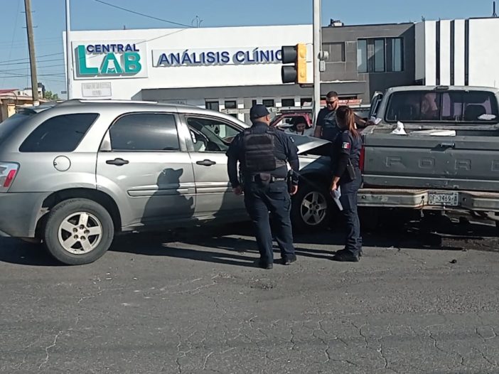 Una pickup Ford F250 y una camioneta Chevrolet Equinox chocaron esta mañana sobre la avenida Pascual Orozco, justo frente a las oficinas del sindicato de la Universidad Autónoma de Chihuahua.