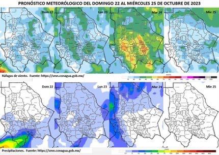 Asimismo, se esperan vientos de 5 a 20 km/h, con rachas que pueden superar los 45 km/h en algunos puntos de la zona noroeste, incluye Janos; pueden superar los 35 km/h en partes de las zonas norte, noroeste, oeste, suroeste, centro y sureste.
