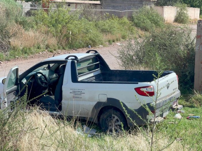 Elementos de la Policía Vial y Municipal localizaron una Ram 700 de color blanco propiedad de la empresa Lacosa Control de Calidad, que fue robada anoche en calles de la colonia Vistas del Norte.