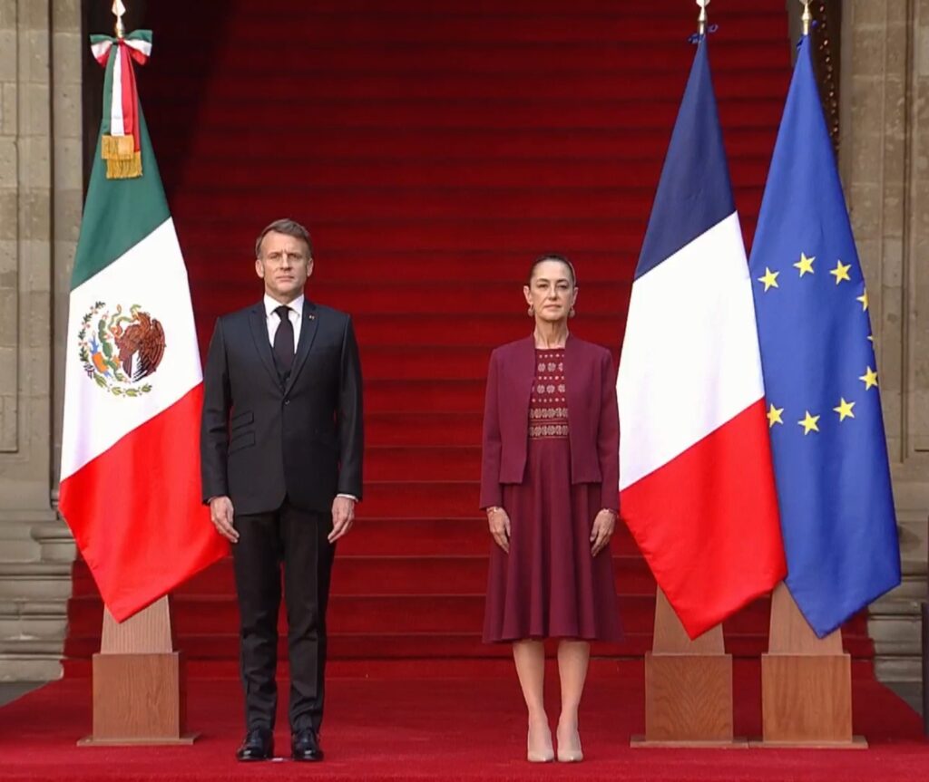 La presidenta de México, Claudia Sheinbaum Pardo, recibió esta mañana en Palacio Nacional al presidente de Francia, Emmanuel Macron, quien realiza una visita oficial a México como parte de su gira por América Latina.