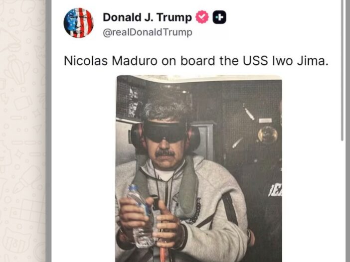El presidente de Estados Unidos difundió una imagen de la presunta captura de Nicolás Maduro, en medio de la ofensiva militar y la polémica internacional por la intervención en Venezuela