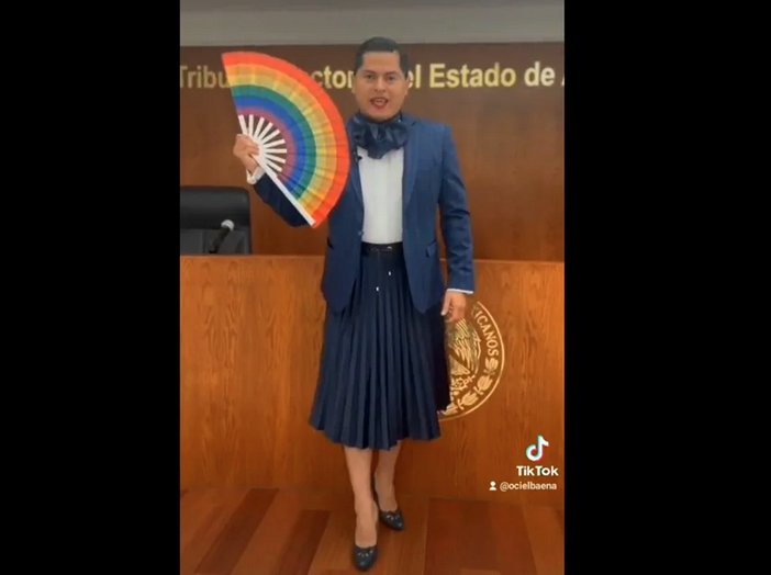 Ociel Baena Saucedo, concebide primer magistrade electoral no binarie en América Latina, respondió a quienes critican el uso del pleno del Tribunal Electoral del Estado de Aguascalientes para grabar videos para sus redes sociales.