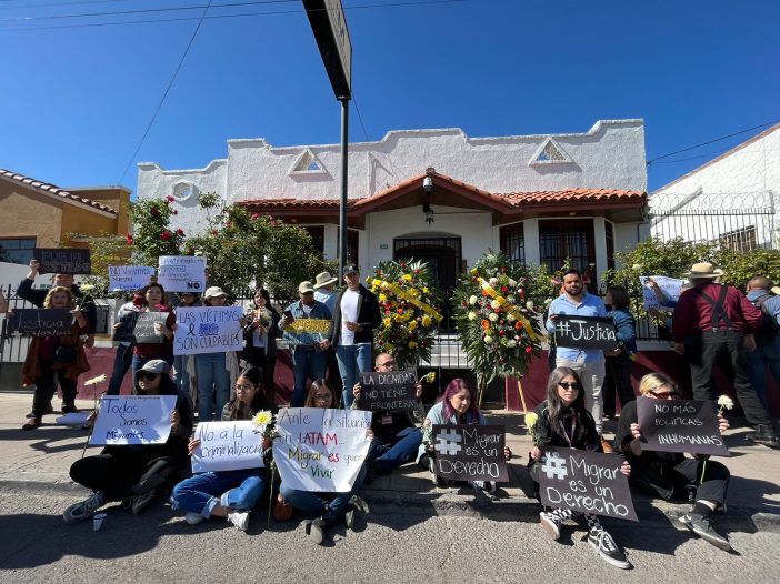 La asociación civil “Uno de 7 migrando” realiza marcha fúnebre desde el parque Eloy Vallina hasta las instalaciones del Instituto Nacional de Migración (INM) para protestar por los hechos ocurridos en Ciudad Juárez, donde 39 migrantes fallecieron en el incendio de un centro migratorio de esa institución.