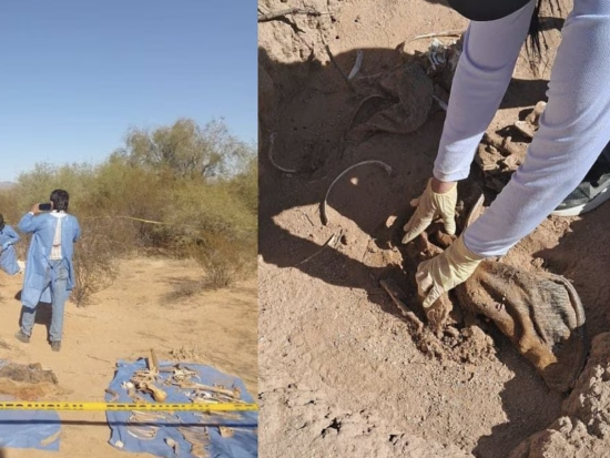 Localizan restos óseos de al menos 18 personas en Sonoyta; personal de la Fiscalía del Estado trabaja en el procesamiento de la escena