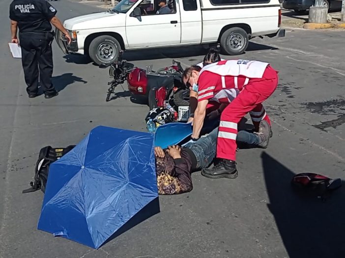 El conductor de una motocicleta de la marca Vento resultó con fractura en la pierna izquierda, luego de que chocara de frente contra una pick up Mitsubishi.