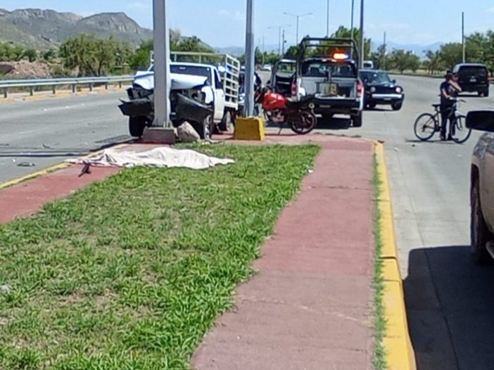Un hombre falleció la tarde de este sábado cuando su motocicleta se impactó contra una camioneta pick up cuando circulaba por la Vialidad Sacramento, de sur a norte.