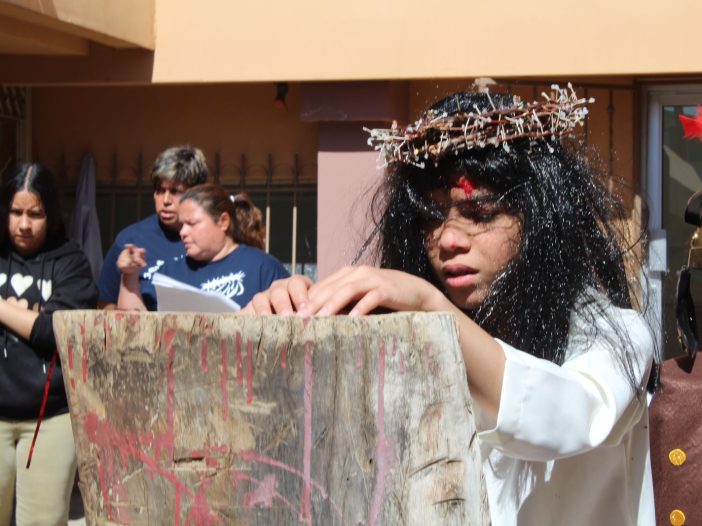 Los feligreses de la parroquia Cristo Rey revivieron el tradicional momento en que Jesús carga la cruz, gracias a un grupo de niños que ataviados con las vestiduras de la época dieron vida a ese doloroso momento bíblico