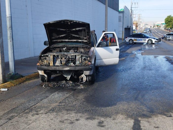 Una camioneta Chevrolet S10 se incendió al presentar una falla mecánica en el motor cuando transitaba por el cruce de la calle Melchor Guaspe y avenida Ocampo.