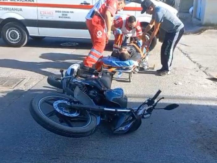 Un motociclista de 50 años que transitaba por calles de la colonia Tarahumara resultó lesionado tras impactarse de frente contra un vehículo perteneciente al Municipio; ambos conductores omitieron el alto correspondiente.